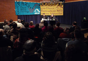 Über 40 Besucher kamen am 4. März 2010 ins Forum Jugendkulturzentrum, um einem sehr informativen Vortrag zuzuhören. Pflüger verdeutliche die zentrale Rolle die Bundeswehr für die Logistik des Kriegseinsatzes und informierte über die Entscheidungen im Hintergrund bei der Bombardierung von zwei Tanklastzügen bei Kundus. Bei dem von Bundeswehr-Oberst Klein angeforderten Bombardement sind 140 Menschen umgebracht worden. Wie viele Ziviltote der Kriegseinsatz verursacht hat und welche Interessen die Bundesregierung verfolgt, sprach er ebenfalls an.