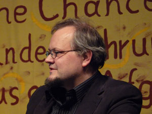 Tobias Pflüger von der Informationsstelle Militarisierung (IMI) und 2005-09 Mitglied des