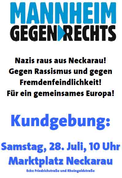 Kundgebung Sa. 28. Juli, 10 Uhr Marktplatz Neckarau