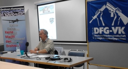 "Bewaffnete Drohnen: Neue Art der Kriegsführung" Zu diesem Thema gab es am 1. Juni 2016 eine Info- und Diskussionsveranstaltung mit Rainer Braun im Mannheimer Gewerkschaftshaus: